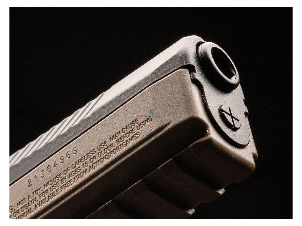 Bardzo dobrze wykonany pistolet CO 2 jest maksymalnie zbliżony do swojego ostrego pierwowzoru pod względem designu, w tym kolorystyki, gdzie np. kontrolka bezpieczeństwa i niektóre inne elementy ozdobione są stylową patyną w postaci subtelnego przetarcia lakieru. Każdy egzemplarz posiada swój własny numer seryjny.